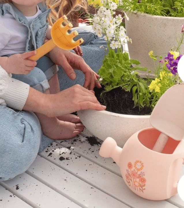 Perfect for the garden, or even at the beach, this gardening set encourages littles ones to help take care of the world around them. Featuring a 100% silicone watering can and a 100% recycled, biodegradable rake and with silicone grip handles, kids will love planting and watching their garden grow .