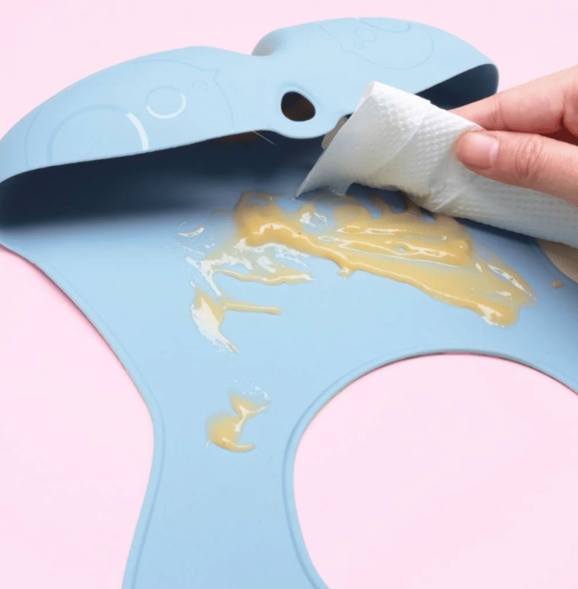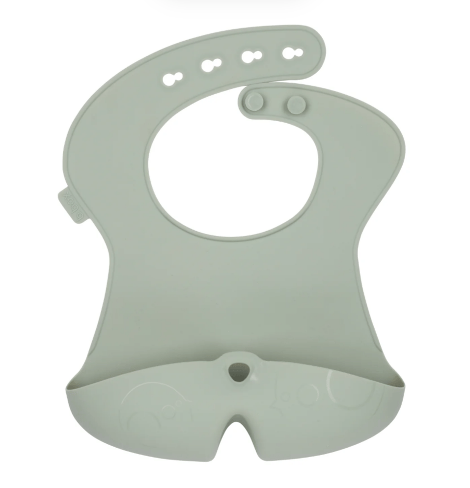 What a catch! This perfect take anywhere bib features a deep 'stay open' pocket, structurally designed to help catch more food and liquids, keeping baby cleaner, drier and more comfortable at mealtimes. Made from non-toxic, food-grade silicone that retains a smooth non-stick surface, even when wet.