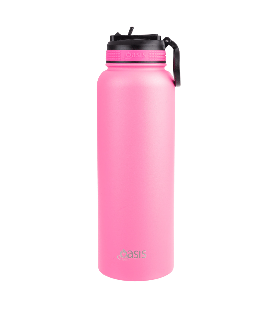 Oasis Stainless Steel Insulated Challenger Sports Bottle with Sipper Straw 1.1L Neon Pink